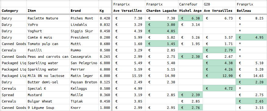 In general, I find Monoprix to be the best but also dearest. I found Carrefour better priced and better quality than Franprix, but Franprix generally has better coverage. Lidl exists but it's not as common as the others. As a rule of thumb, I suggest anyone avoid living anywhere that requires you to shop at Franprix as your only option. However, there’s a lot of variation between stores, and I only sampled a tiny fraction of Parisian supermarkets. There are other franchises I'm no doubt overlooking and independent markets are a level of French linguistic dexterity I've not attained, so take my judgement for the limited perspective that it is.