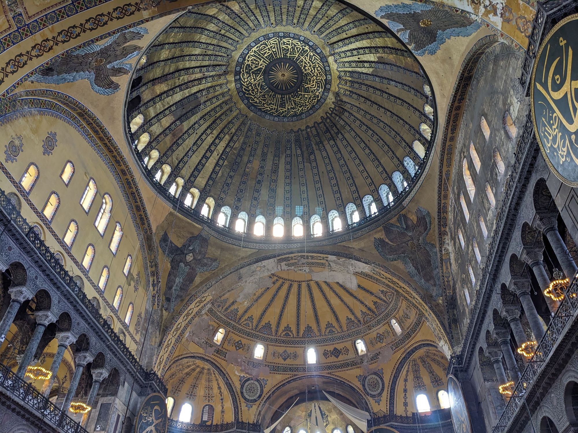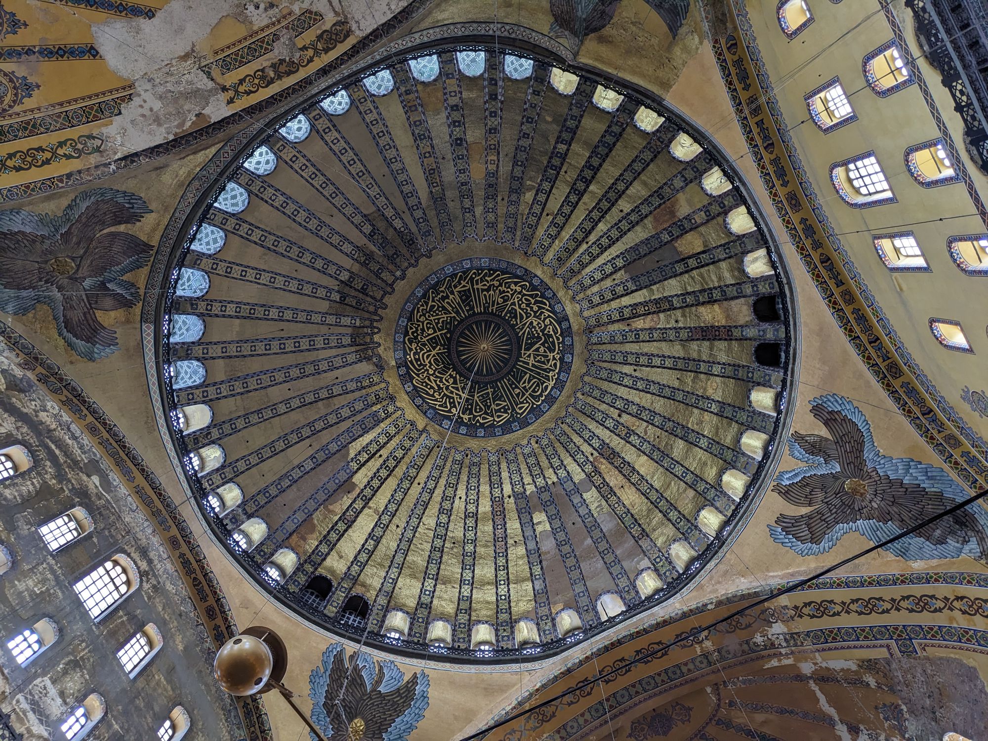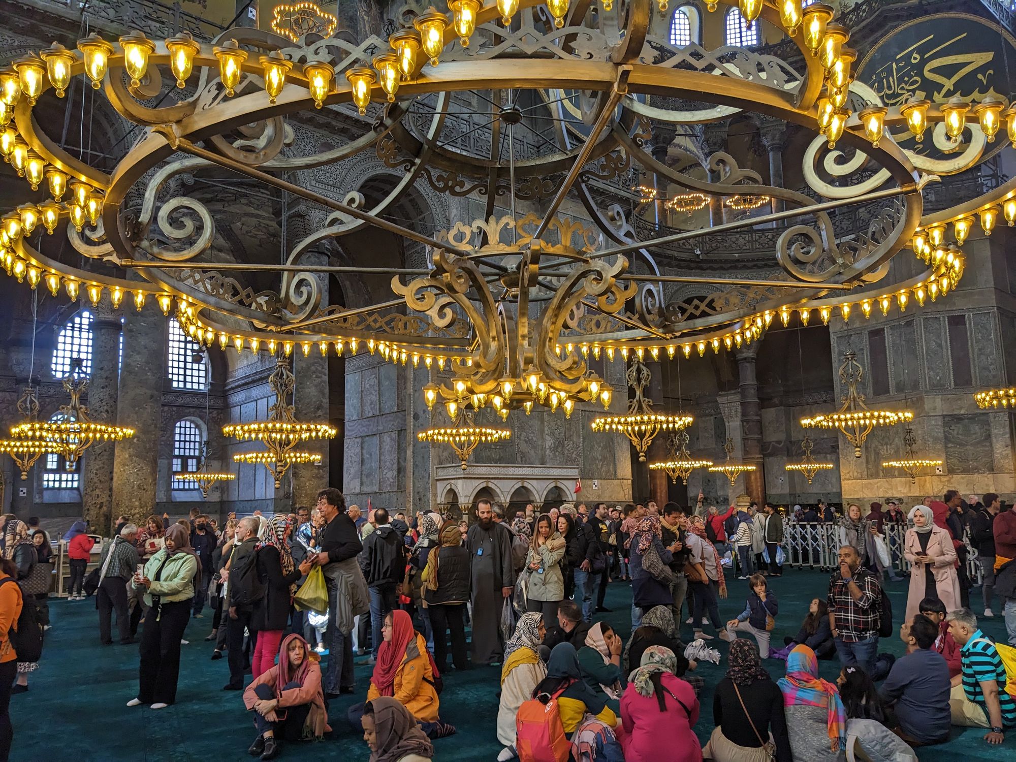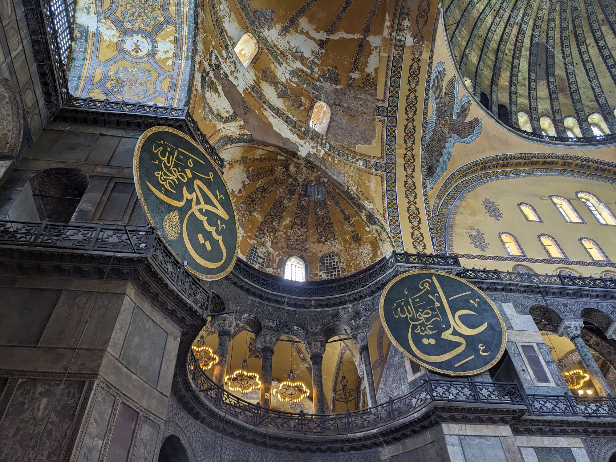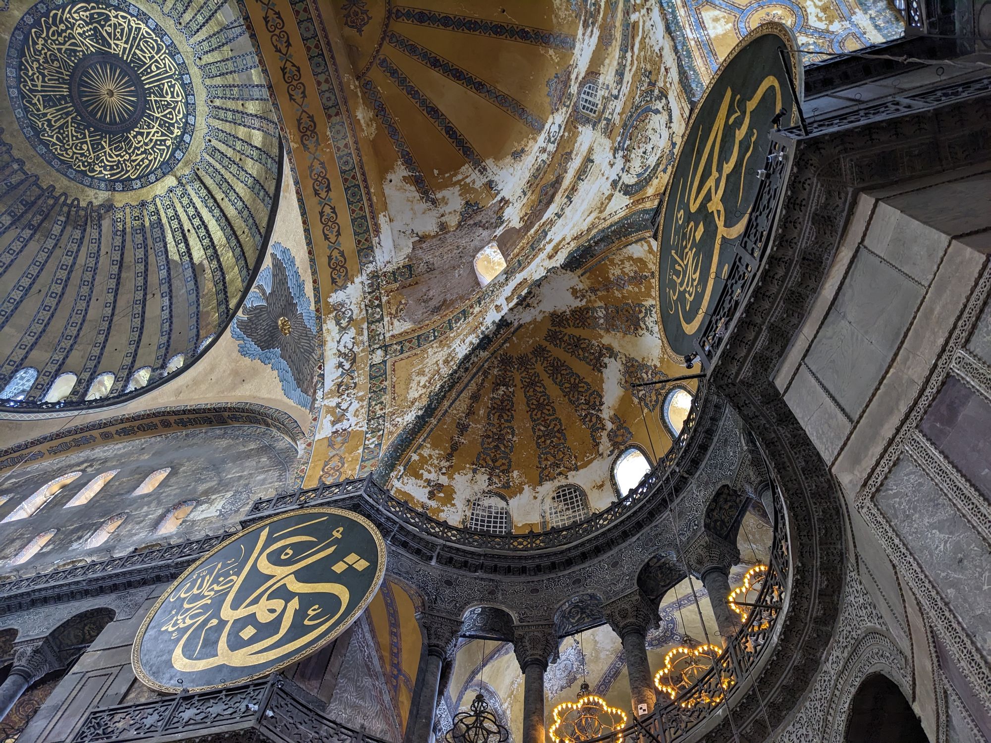 Hagia Sophia has been many things. From 360 to 537 it was a construction site. For the next 1,093 years it was an Eastern Orthodox Church, with a brief interlude as a Catholic Church from 1204 to 1261 thanks to the Fourth Crusade. It was converted to a mosque in 1453, made into a museum in 1935, and converted back to a mosque in 2020, which is what it was when I visited.