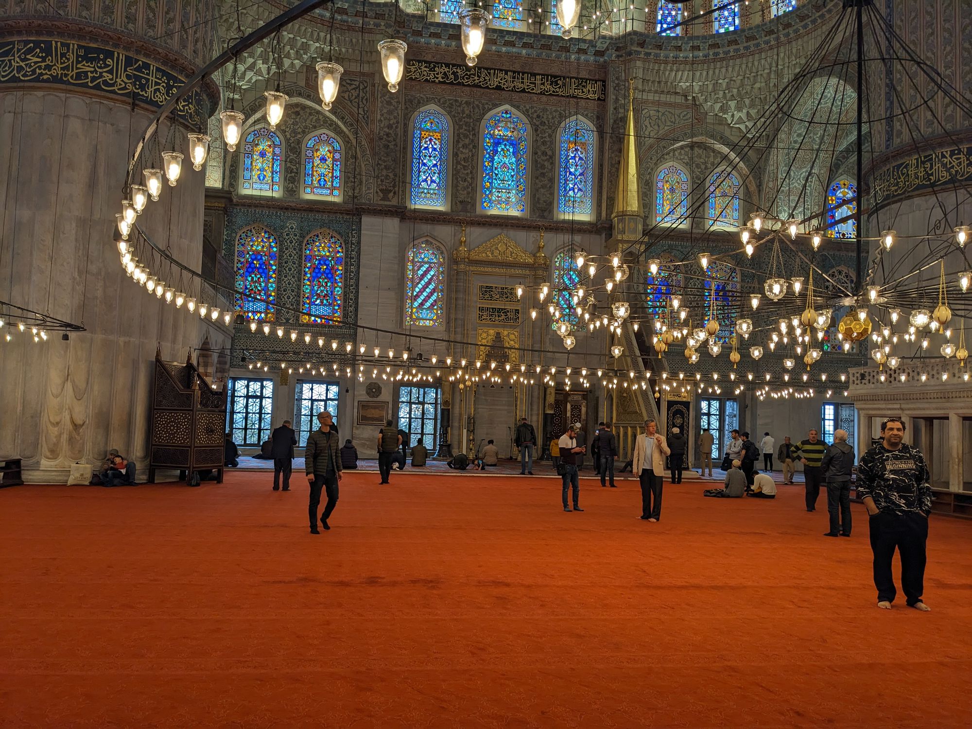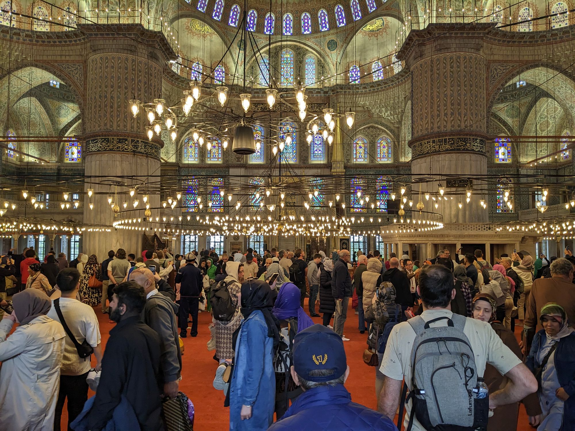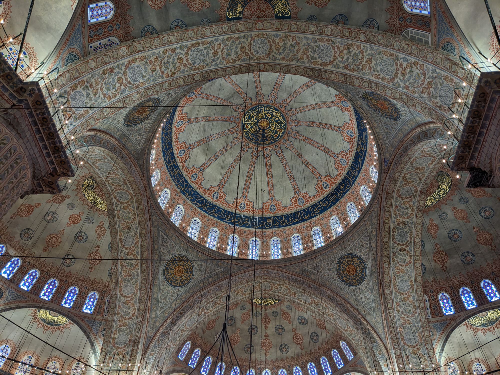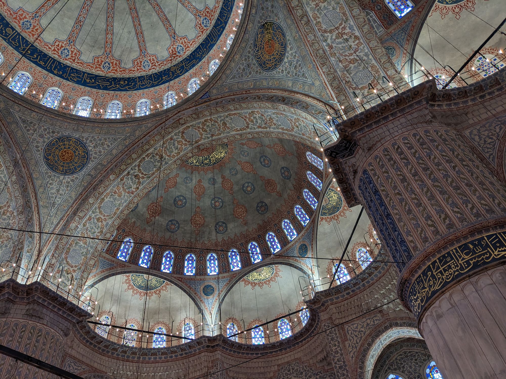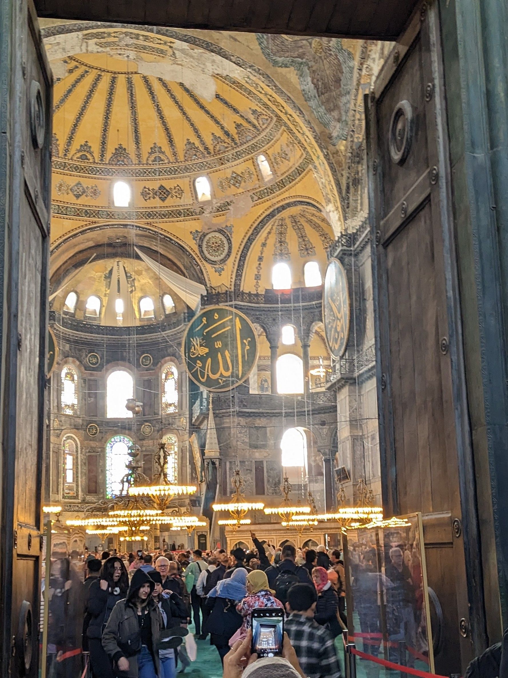 Hagia Sophia has been many things. From 360 to 537 it was a construction site. For the next 1,093 years it was an Eastern Orthodox Church, with a brief interlude as a Catholic Church from 1204 to 1261 thanks to the Fourth Crusade. It was converted to a mosque in 1453, made into a museum in 1935, and converted back to a mosque in 2020, which is what it was when I visited.