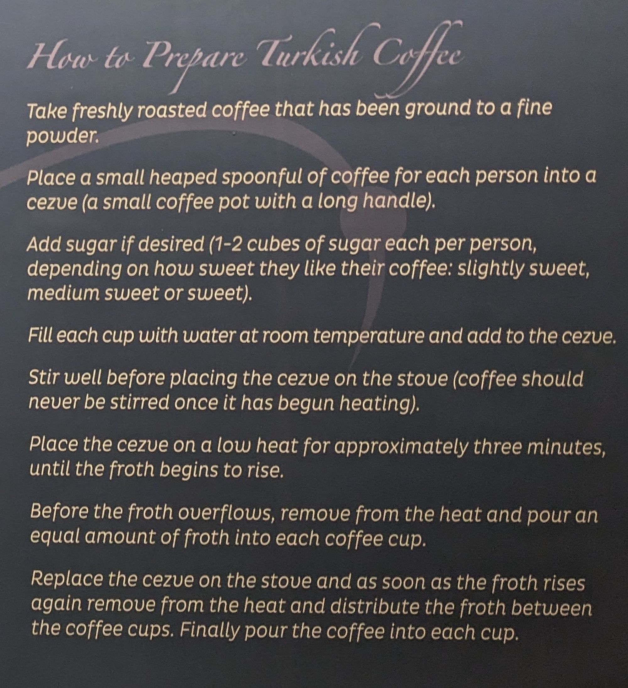- The Palace Kitchens. Just off of the First Courtyard are the kitchens, including rooms for making drinks, sweets and dairy, as well as storerooms, women's quarters (harem), baths and a mosque. The kitchens could feed up to 4,000 people across the palace. Now the rooms display Ottoman glassware, Chinese porcelain, as well as utensils - and a handy explanation how to make Turkish Coffee.