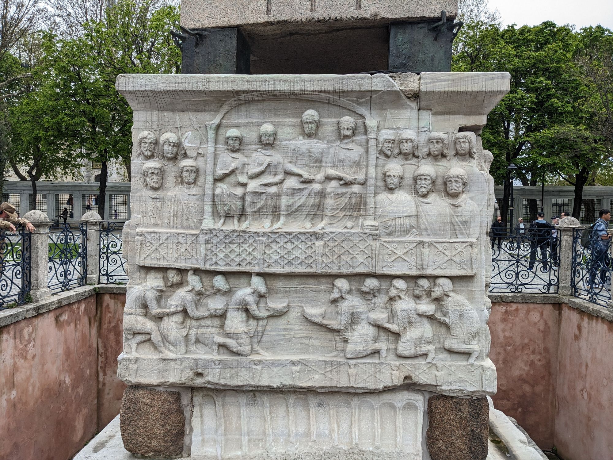 Races at the Hippodrome revolved around ornate columns that divided the track. In the Constantinople Hippodrome, one such column was the Four Horses of St Mark. This column was stolen by the Venetians in 1204, stolen again by Napoleon in 1797 who used them for the Arc de Triumph, then returned to Venice in 1815 and placed in St Mark's Square where they remain to this day.
