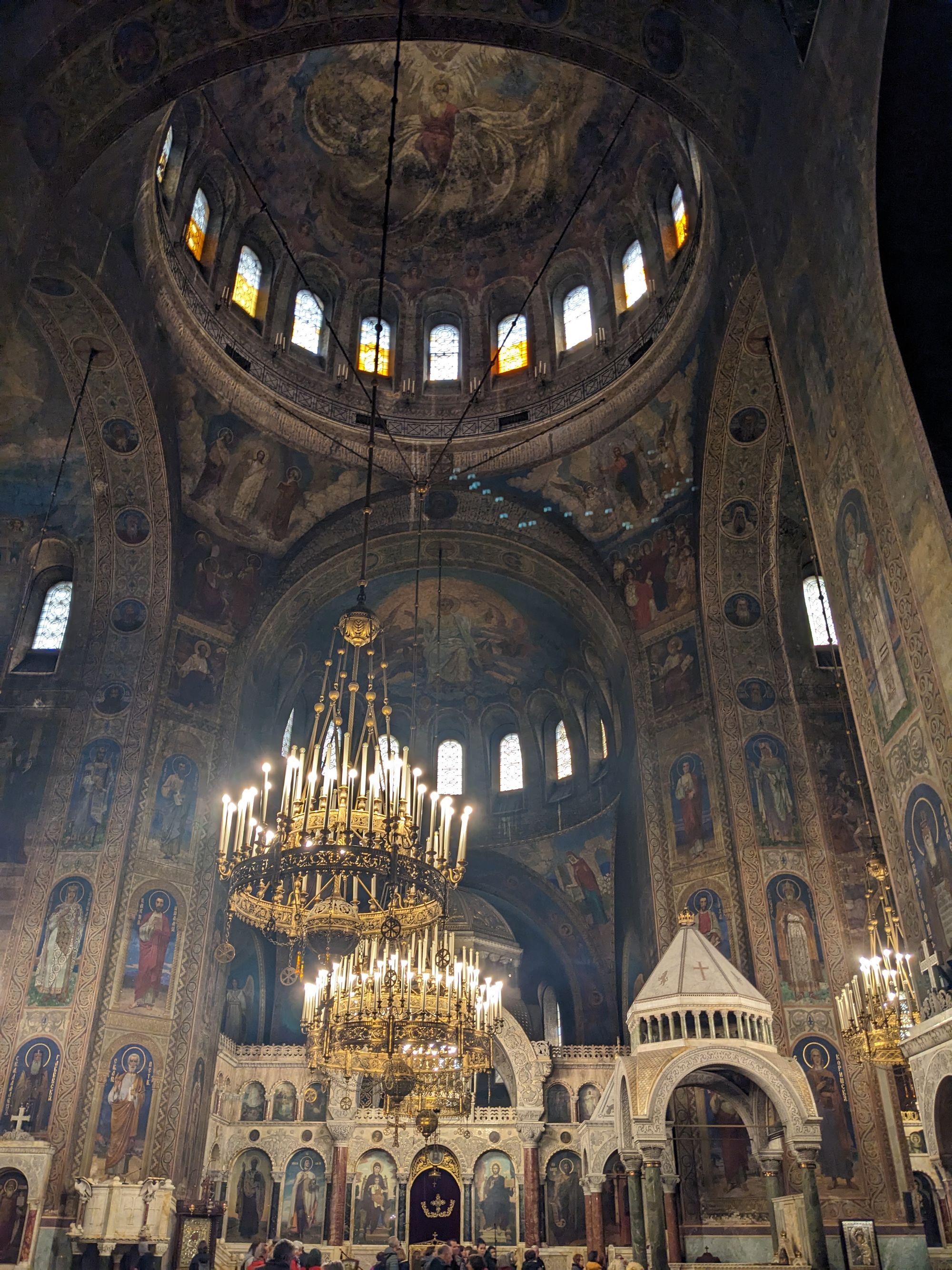 Down the road was the Alexander Nevsky Cathedral, Sofia - not to be confused with the Alexander Nevsky Cathedrals in Paris, Tallinn, Baku or further afield. The cathedral is named for Alexander Nevsky, a Russian ruler in the 1200s who fought off the Germans and Swedes while paying large monetary tribute to the Golden Horde. Sergei Eisenstein made a film about him in 1938. He's a Slavic folk hero.
