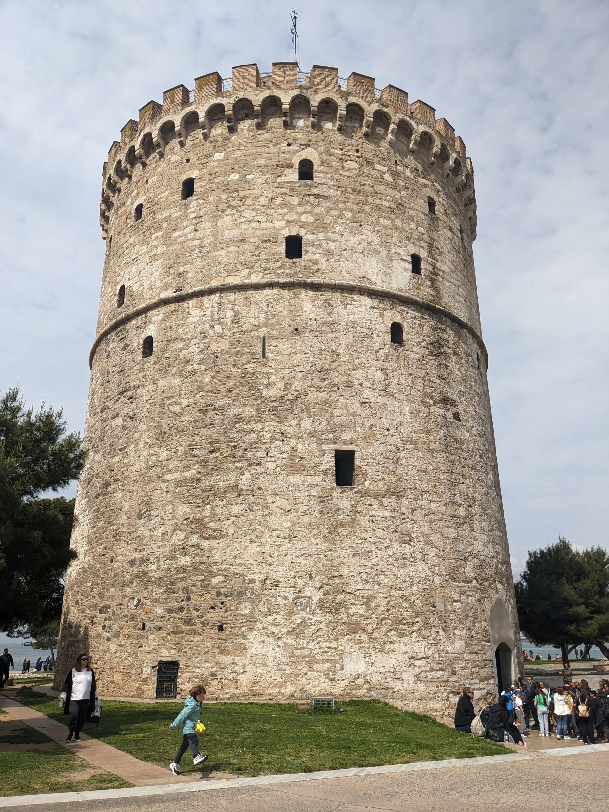 After the tour I boarded the coach to Thessaloniki. At the border crossing we stood around for 30 minutes, admiring the North Macedonian flag behind us, the flags of Greek and the European Union before us. We reached Thessaloniki just before sunset.