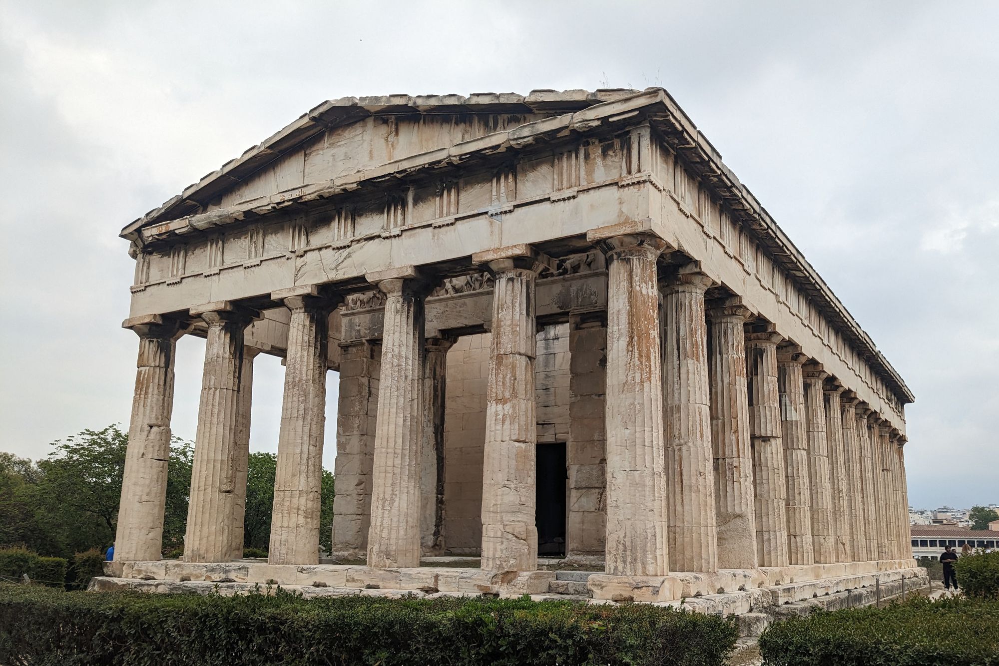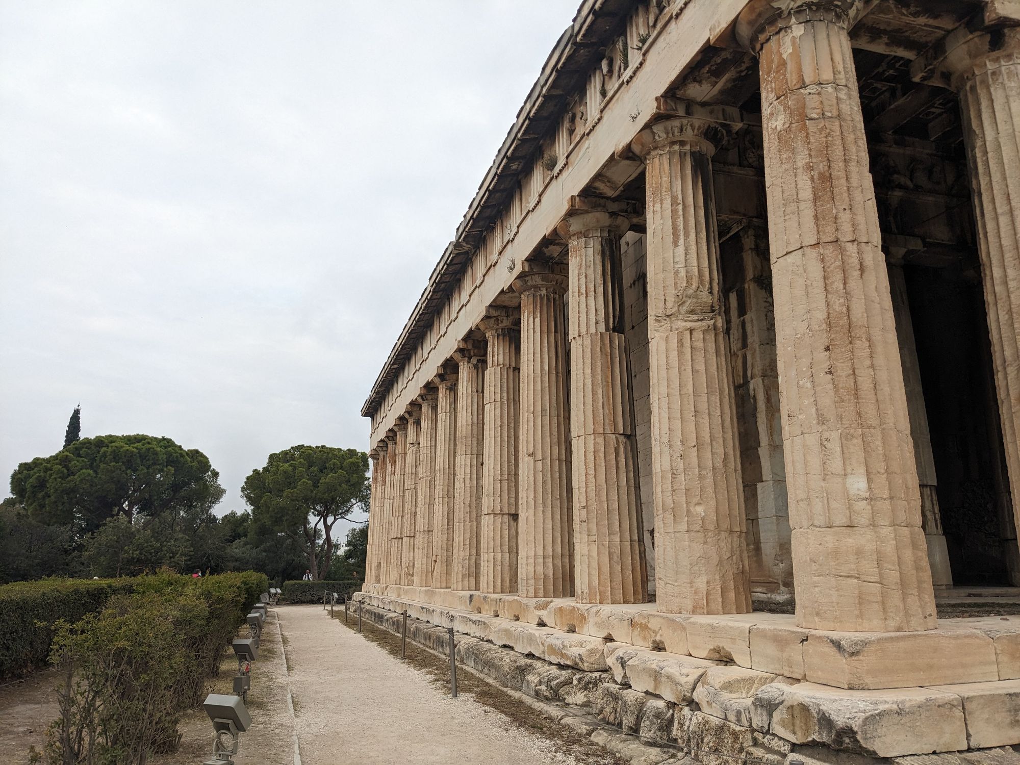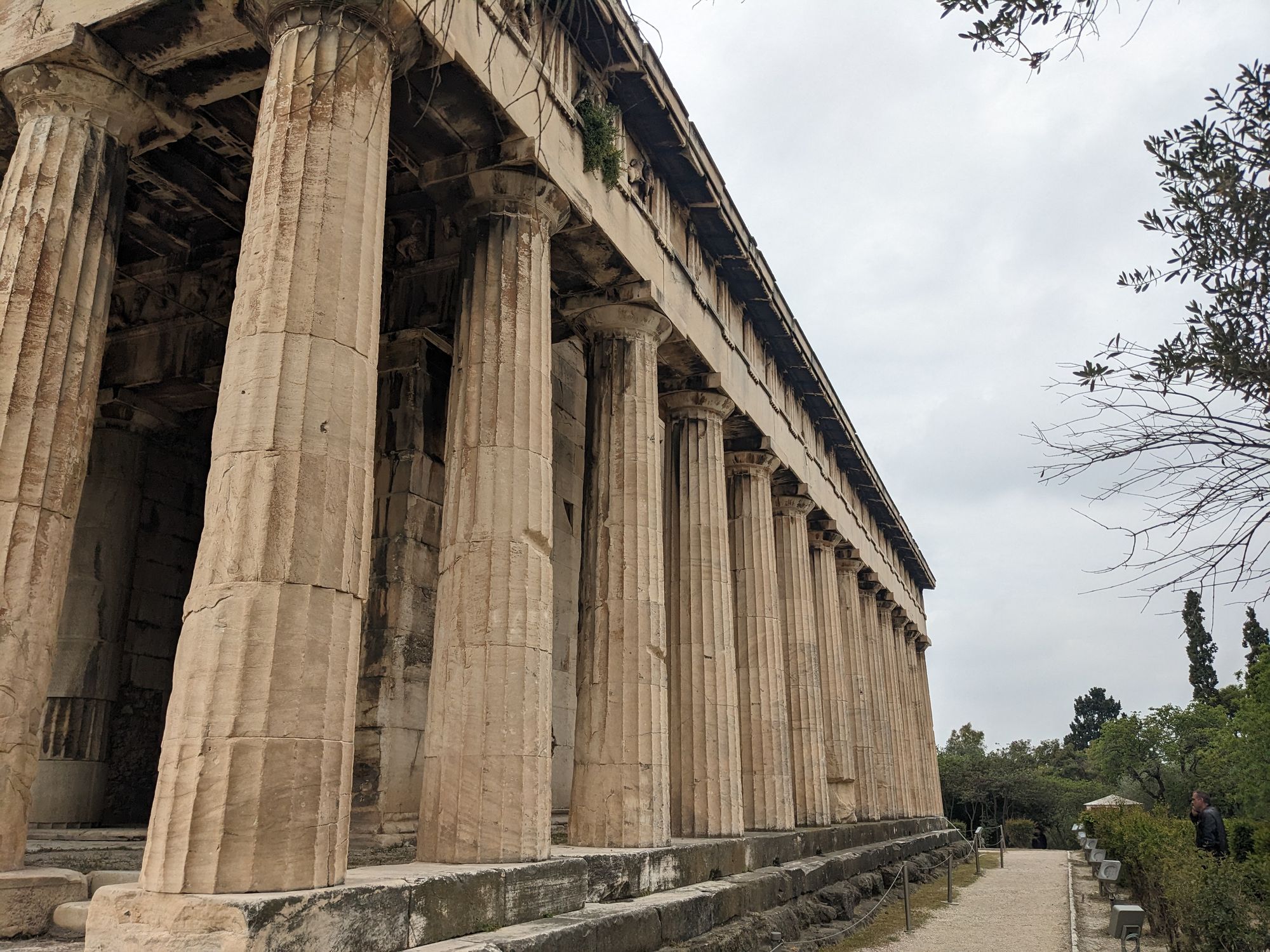 Inside the Agora is the Temple of Hephaestus. The Temple is like the Parthenon in many ways - it's a temple (shock horror), it was built in the 5th century BCE, and its a perfect example of Doric architecture. So perfect that many archaeologists use the Temple of Hephaestus as a blueprint for what an undestroyed Parthenon ought to have looked like.