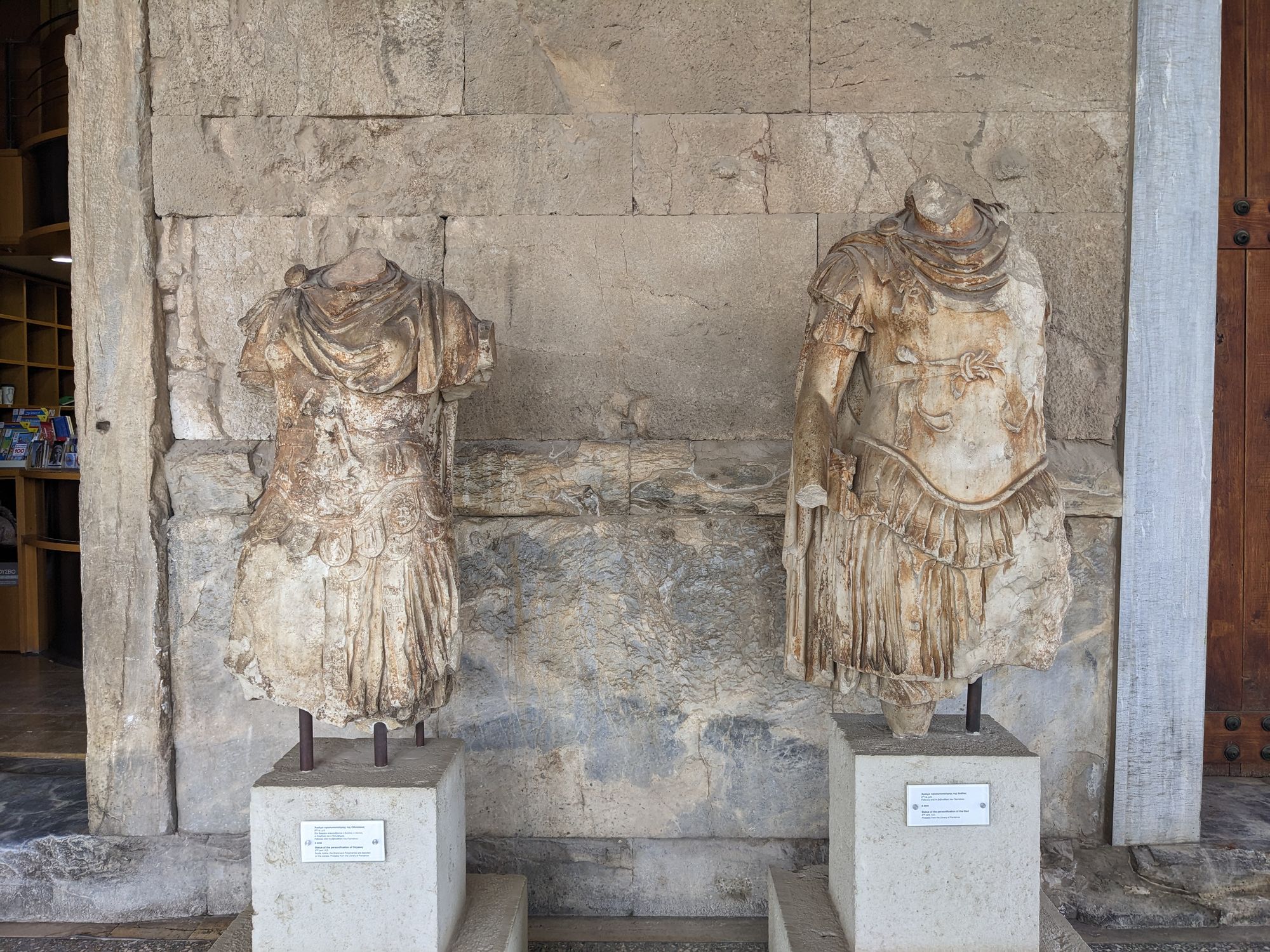 Also within the Agora is the Stoa of Attalos, a large covered walkway that was built in the 2nd century BCE as a marketplace and gathering place for citizens. The stoa was restored in the 1950s and now houses a museum of ancient artifacts. My guide reported that the statues here are missing their heads because the Roman Emperor Hadrian, who was usually such a Hellenophile, decapitated the statues as a strike against Hellenic polytheism.