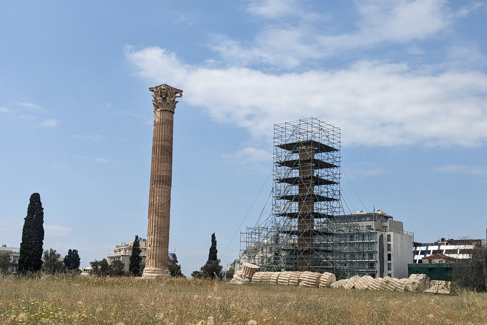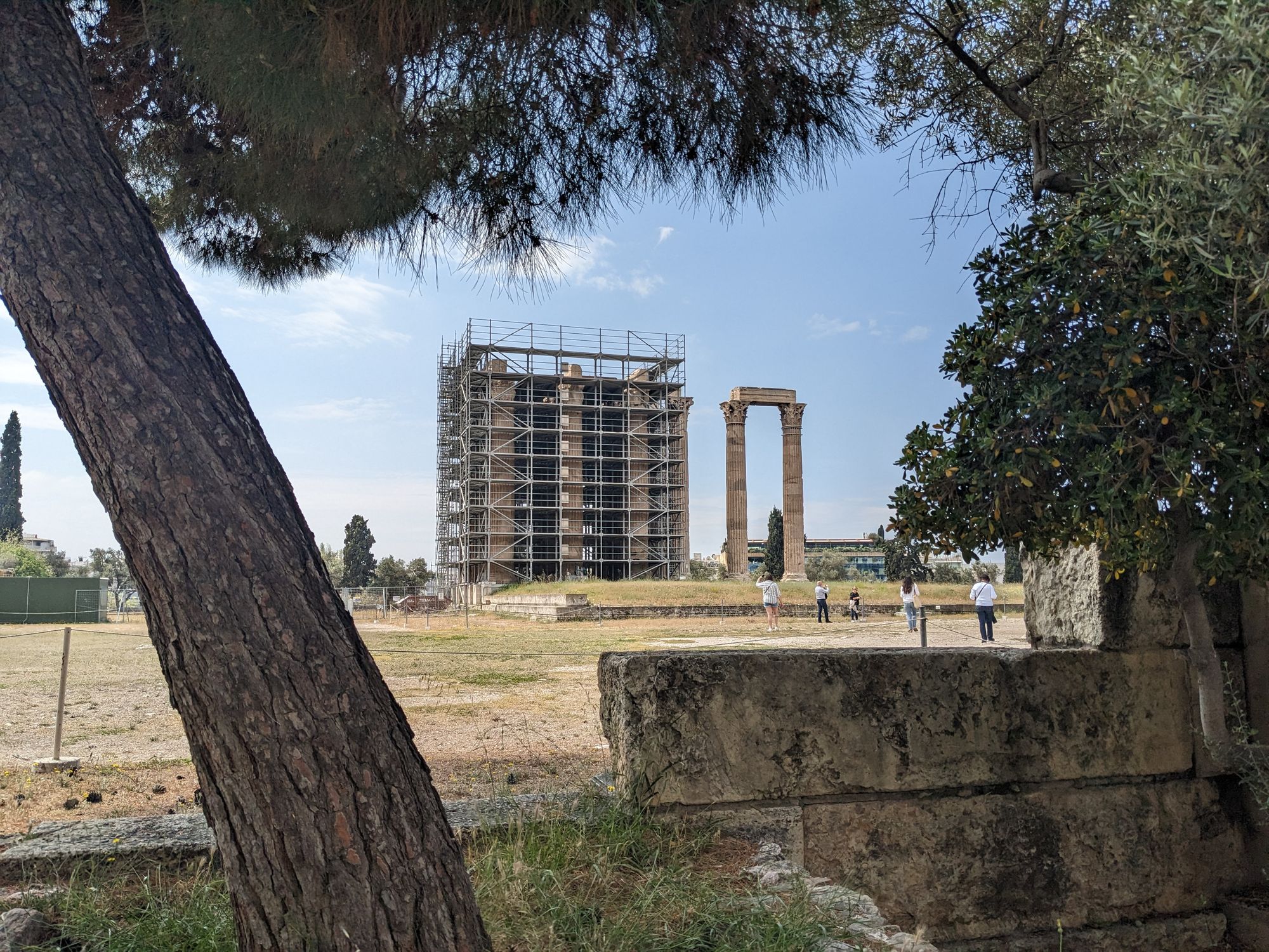 My guide and I then drove to the Temple of Zeus, southeast of the Acropolis. It was one of the largest temples in the ancient world, but only a few columns remain standing today, as Athenians had gradually scavenged pieces of the temple for their own building materials.